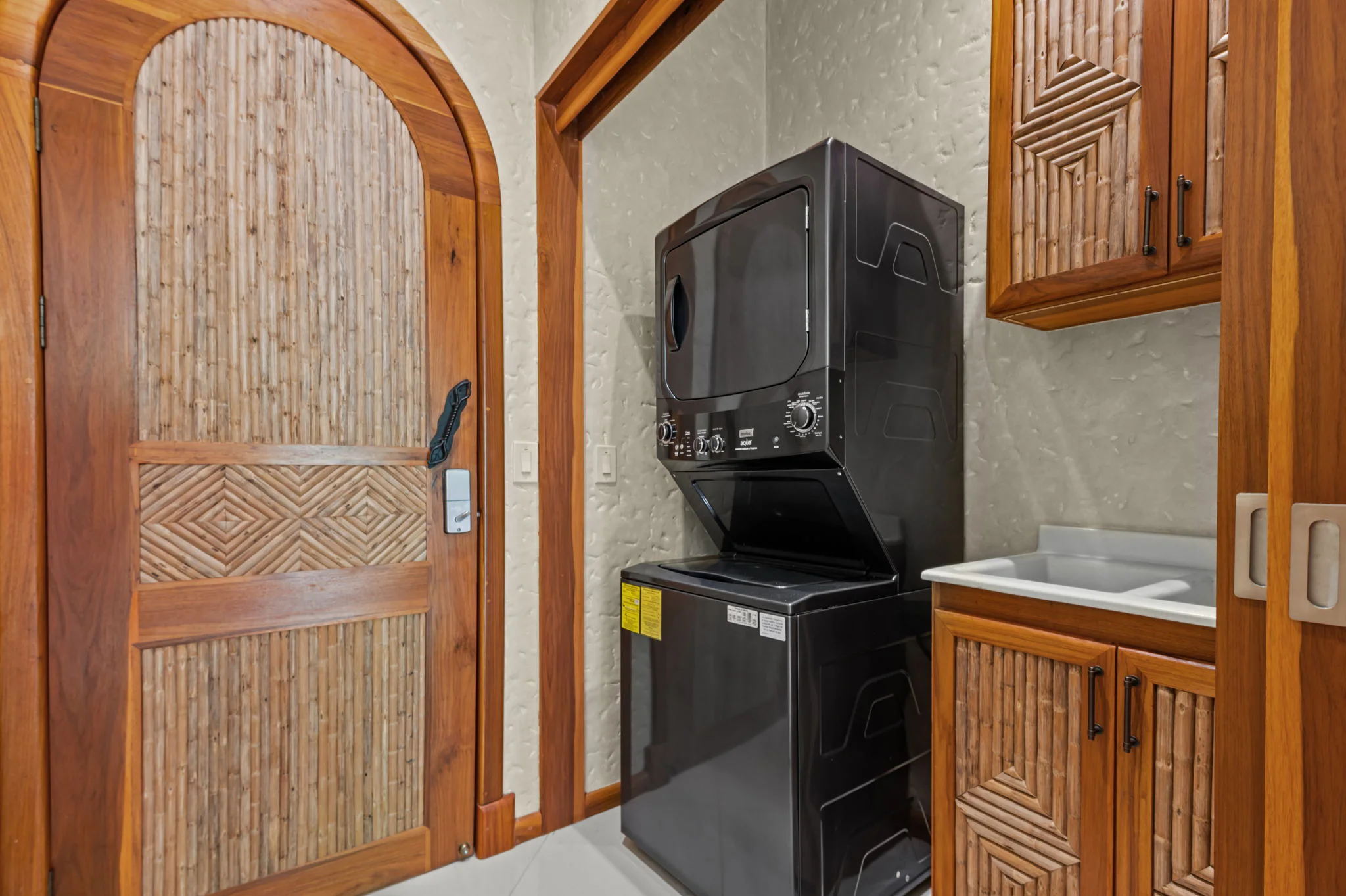 Natural finishes with integrated appliance selections and essential furnishing.
